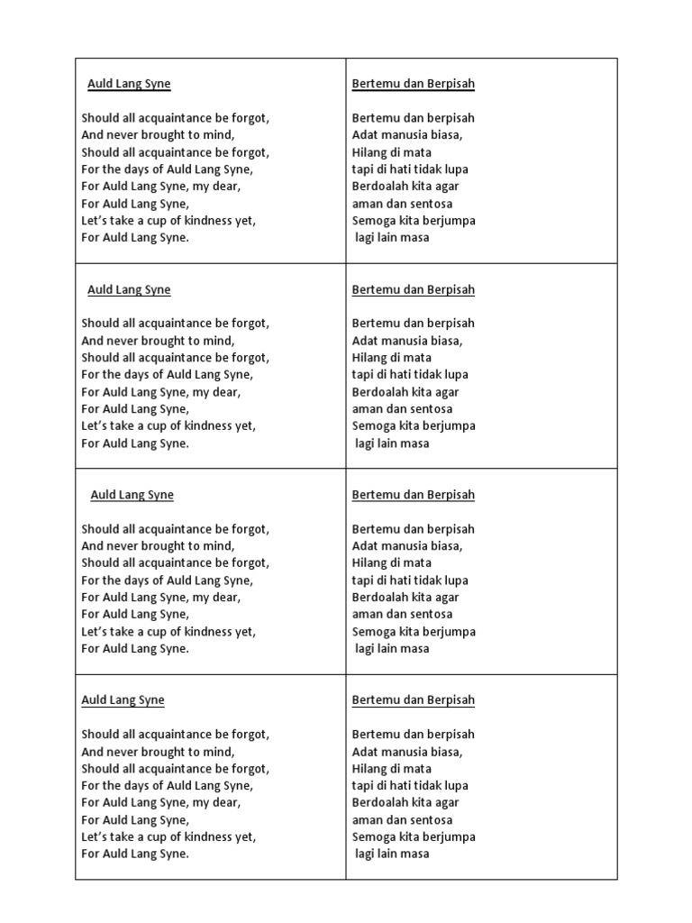 Lirik Bertemu Dan Berpisah Auld Lang Syne Youtube